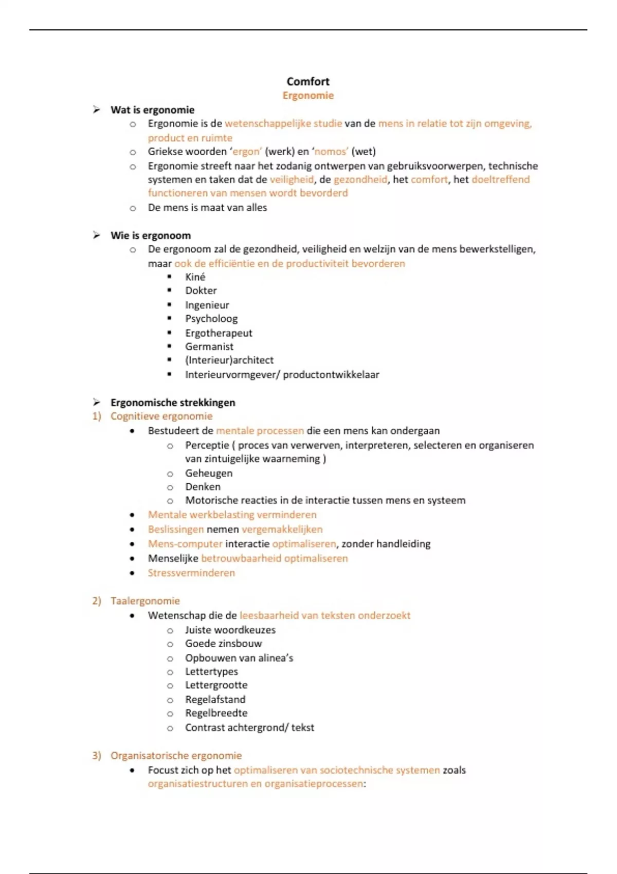Samenvatting ergonomie - biag22 Comfort (biag22)