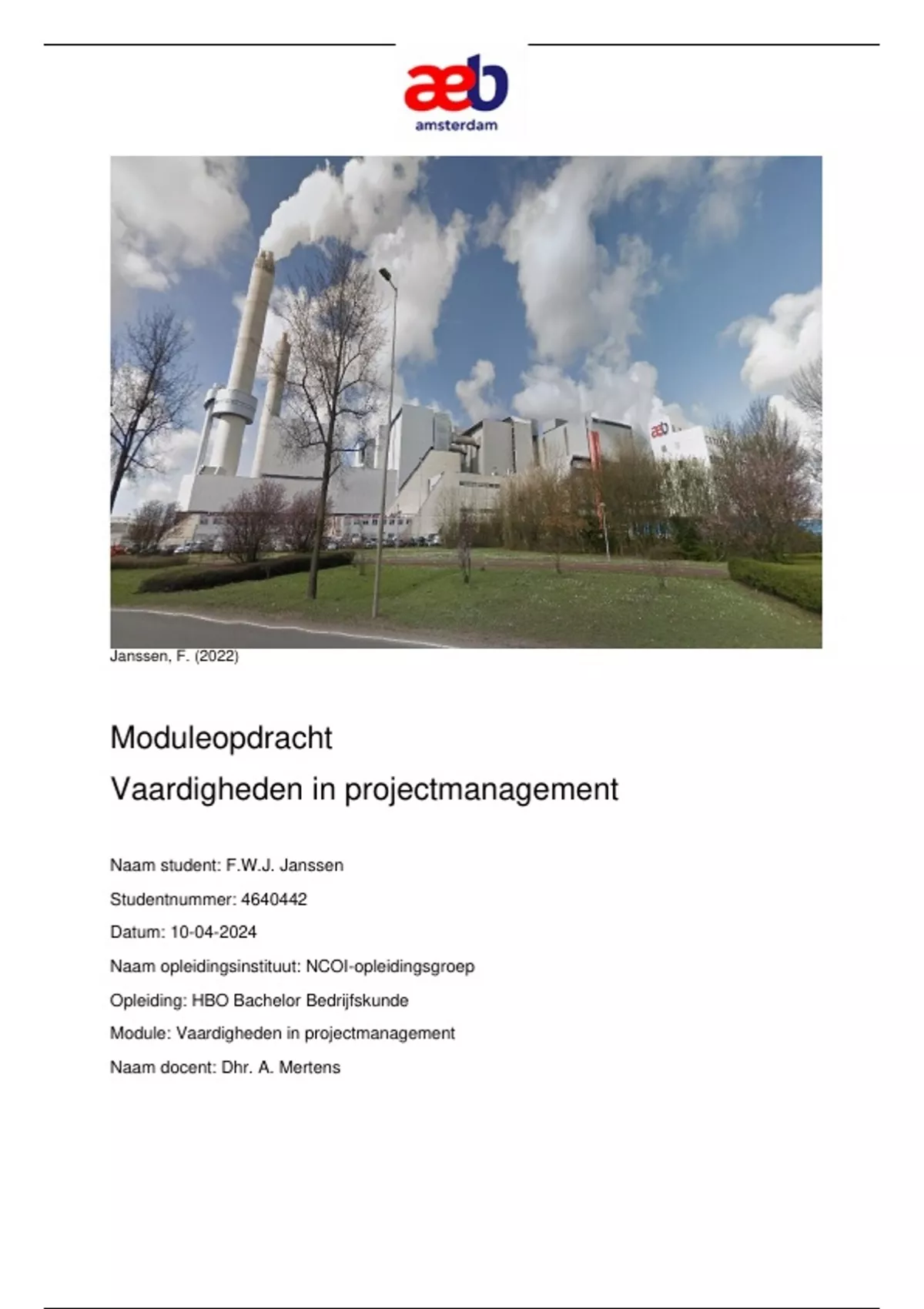 Naam student: F.W.J. Janssen