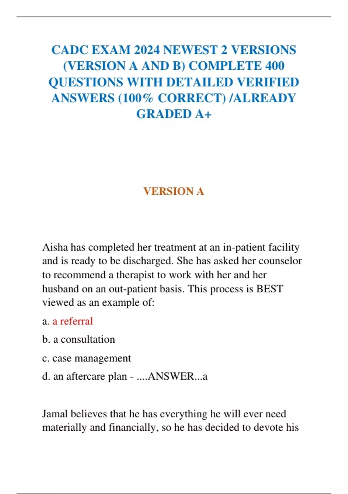CADC EXAM 2024 NEWEST 2 VERSIONS (VERSION A AND B) COMPLETE 400 QUESTIONS WITH DETAILED VERIFIED ANSWERS (100% CORRECT) /ALREADY GRADED A+
