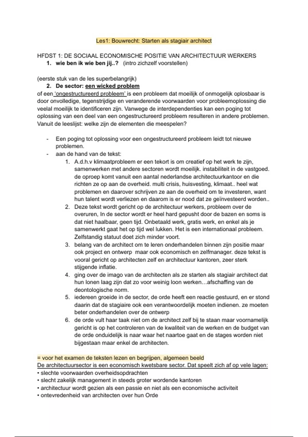 HFDST 1: DE SOCIAAL ECONOMISCHE POSITIE VAN ARCHITECTUUR WERKERS