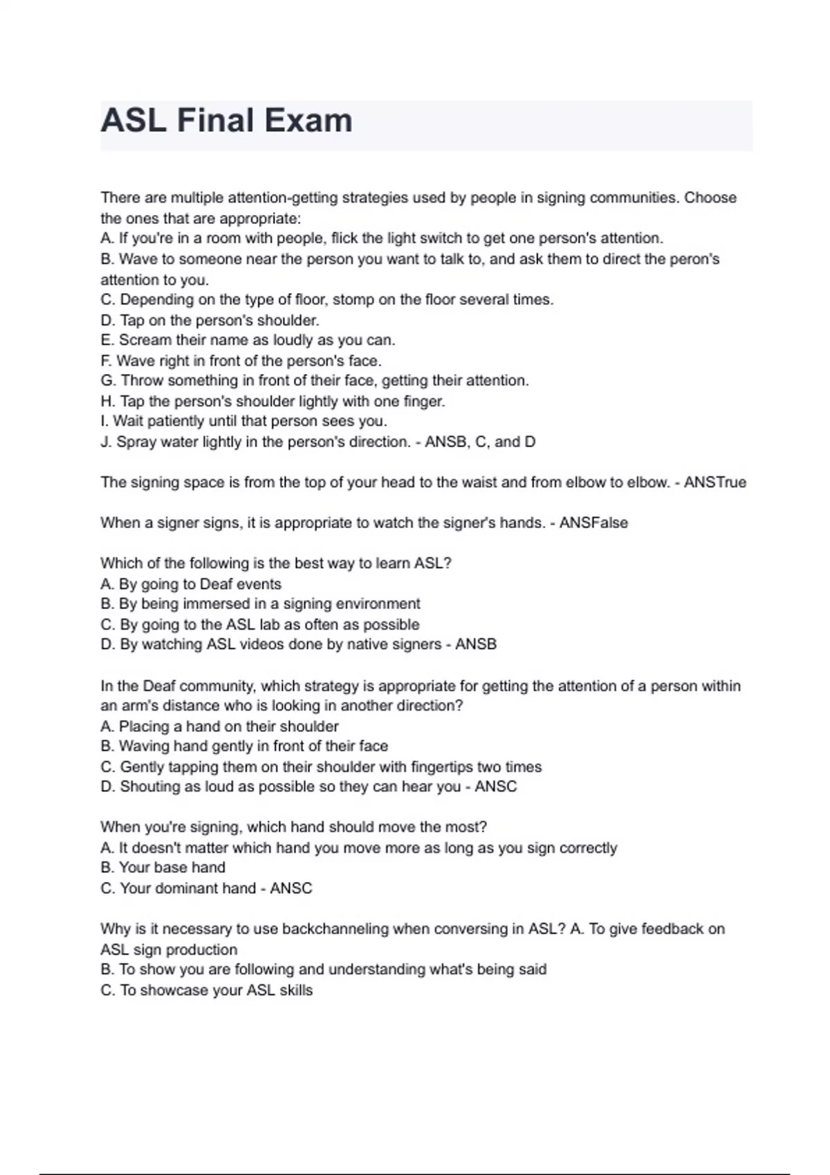 ASL Final Exam questions and answers already graded A+ 2024/2025