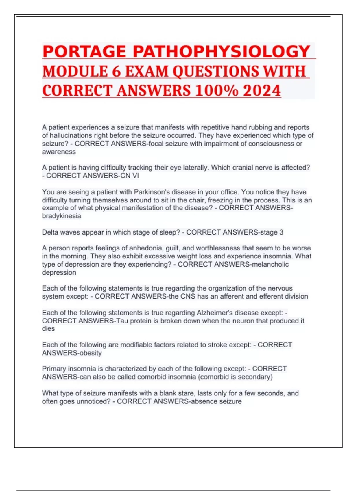 PORTAGE PATHOPHYSIOLOGY MODULE 6 EXAM QUESTIONS WITH CORRECT ANSWERS 100% 2024
