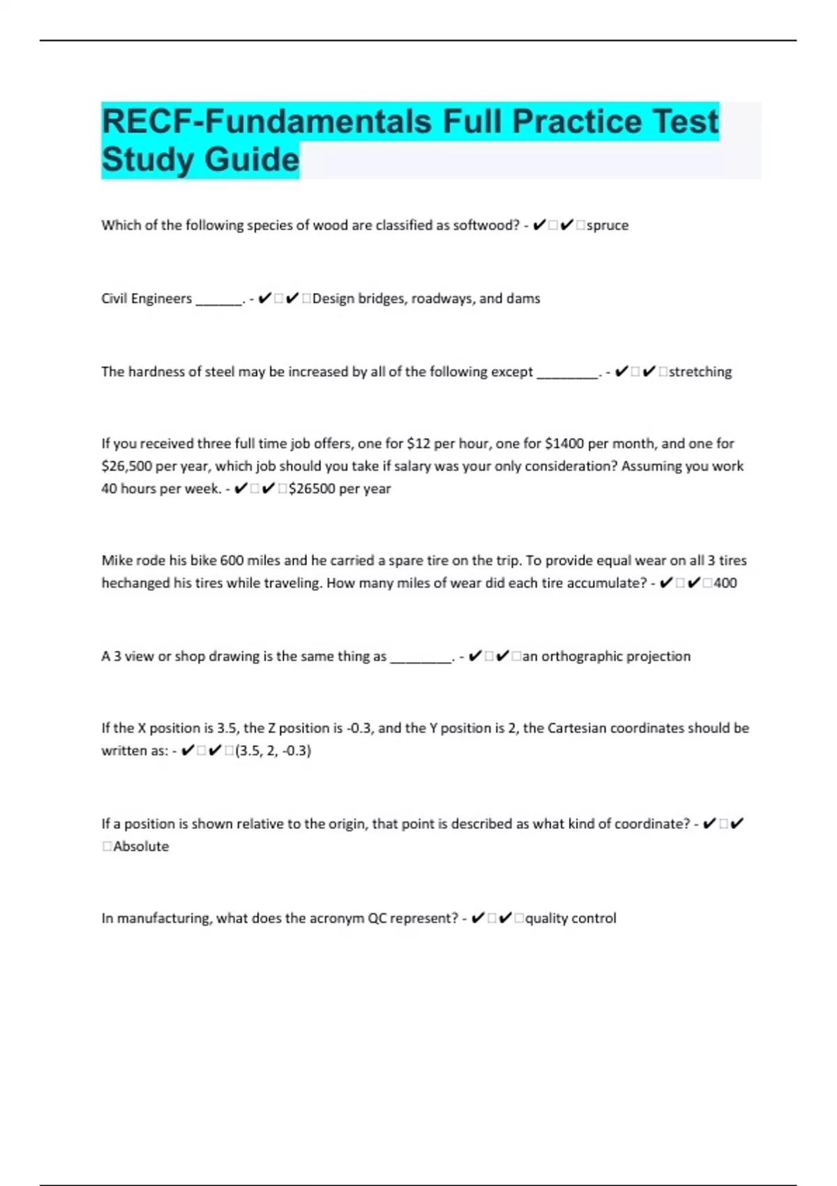 RECF-157 Fundamentals Full Practice Test Study Guide Questions Correctly Answered