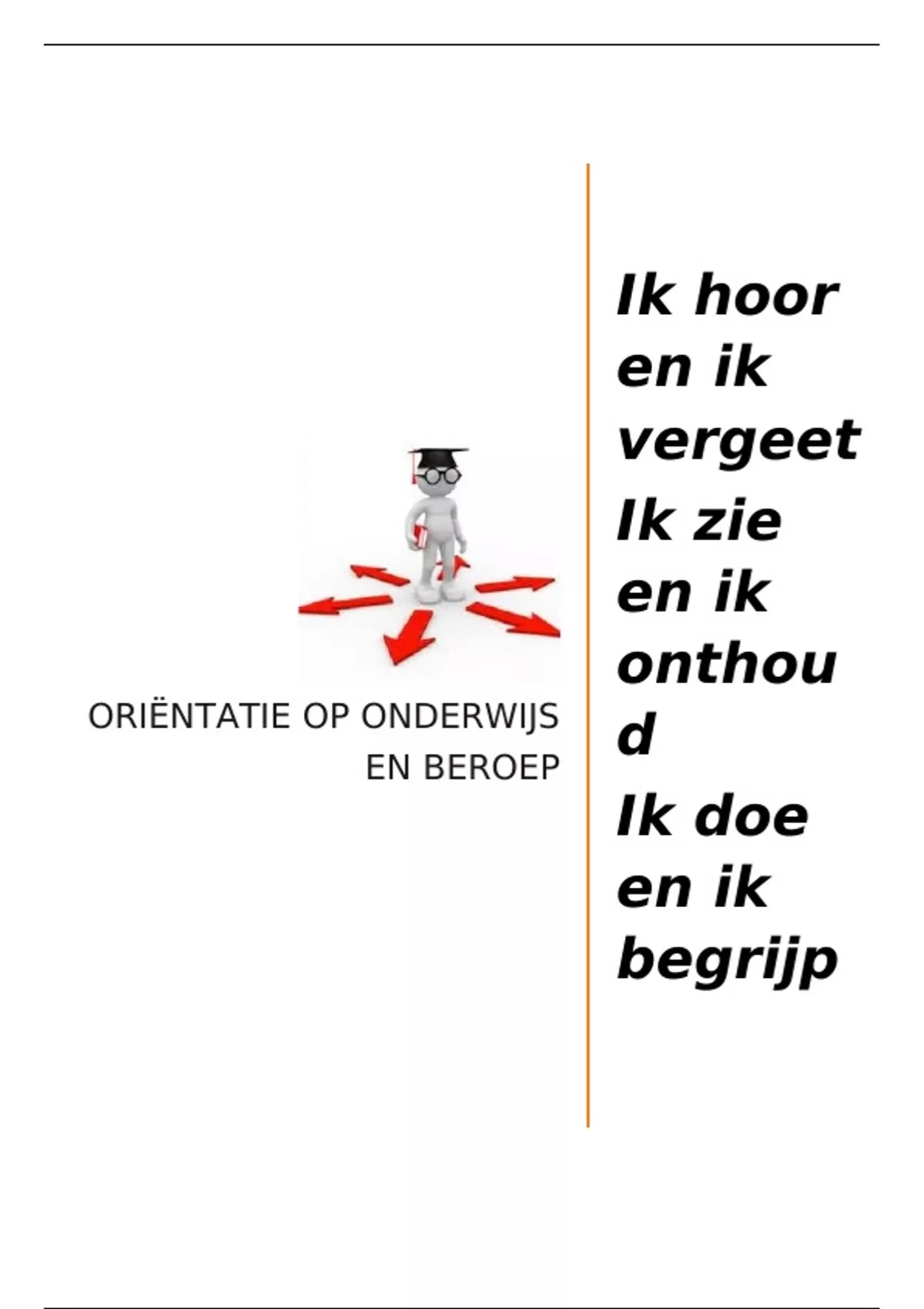 heb doorgemaakt tijdens het volgen van de lessen oriëntatie op onderwijs.