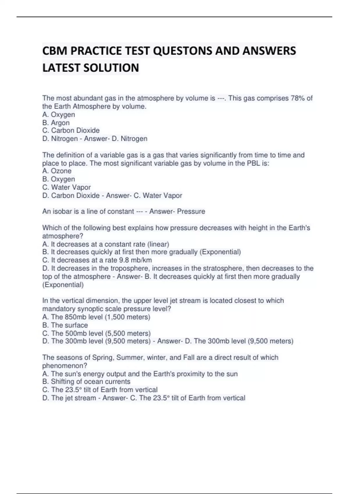 - CBM PRACTICE TST QUETONS AND ANSERS ATEST SOL