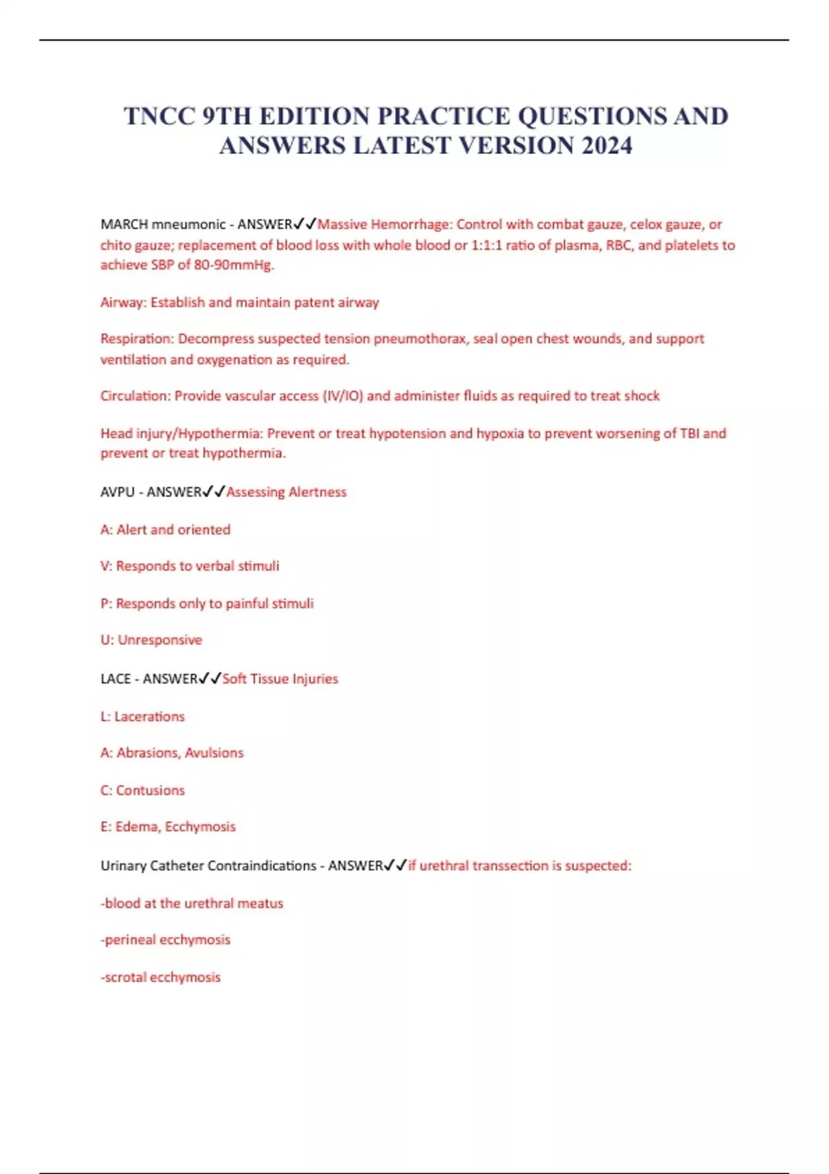 TNCC 9TH EDITION PRACTICE QUESTIONS AND ANSWERS LATEST VERSION 2024