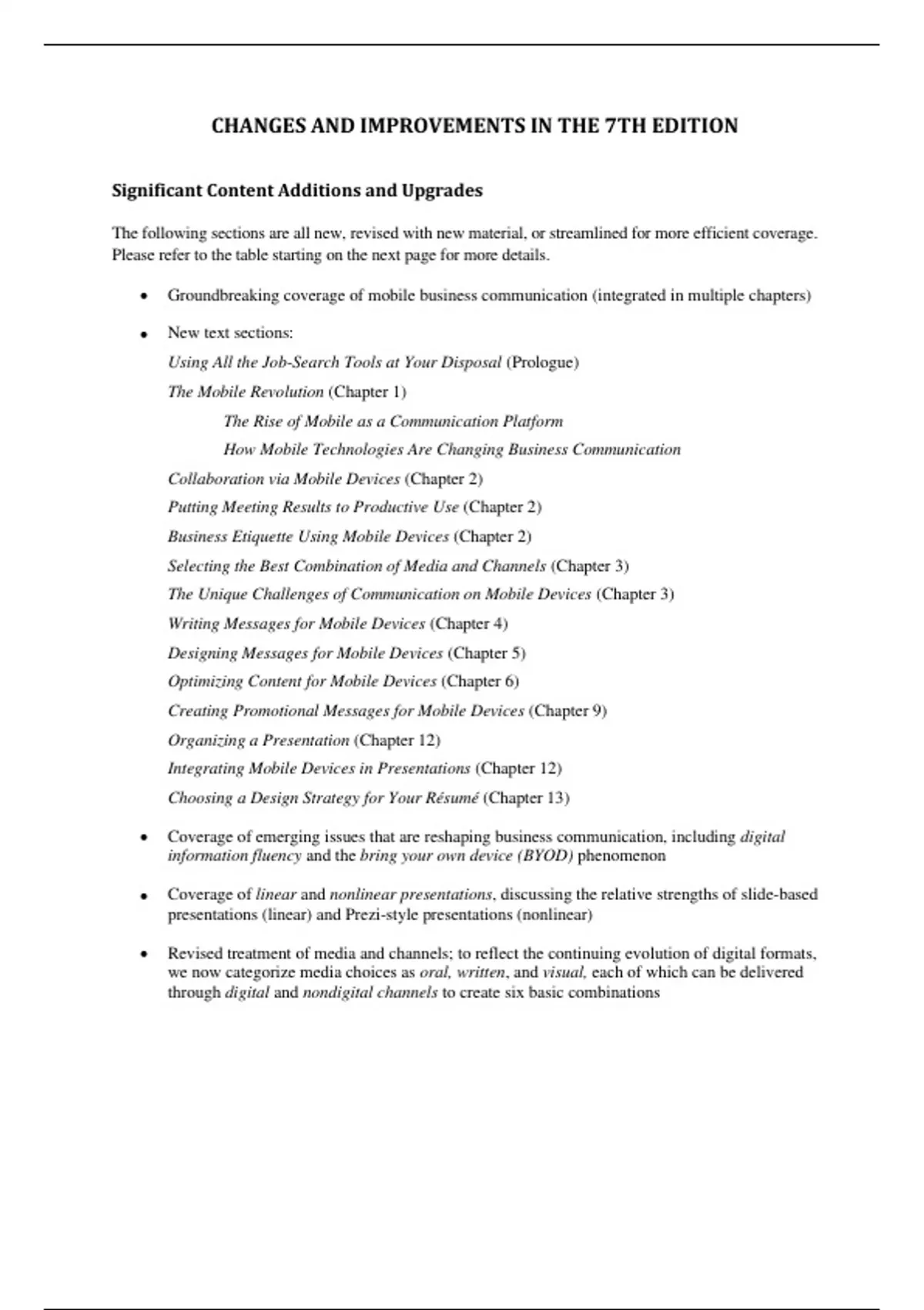 • Groundbreaking coverage of mobile business communication (integrated in multiple chapters)