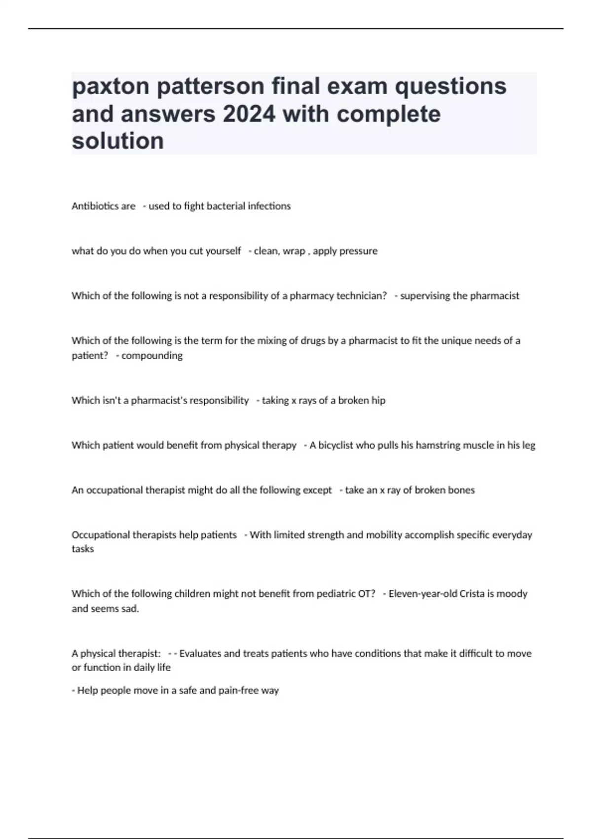 Paxton Patterson Bundled Exams with complete solutions;Solved 100%
