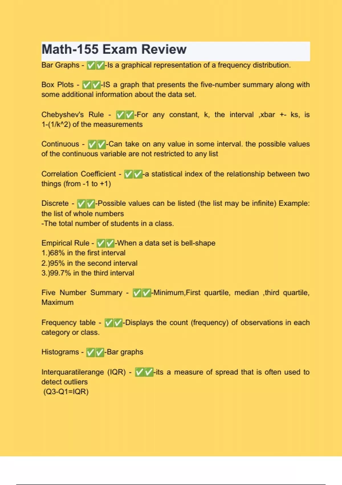 Math-155 Exam Review with 100% Correct Answers | Verified | Latest Update 2024