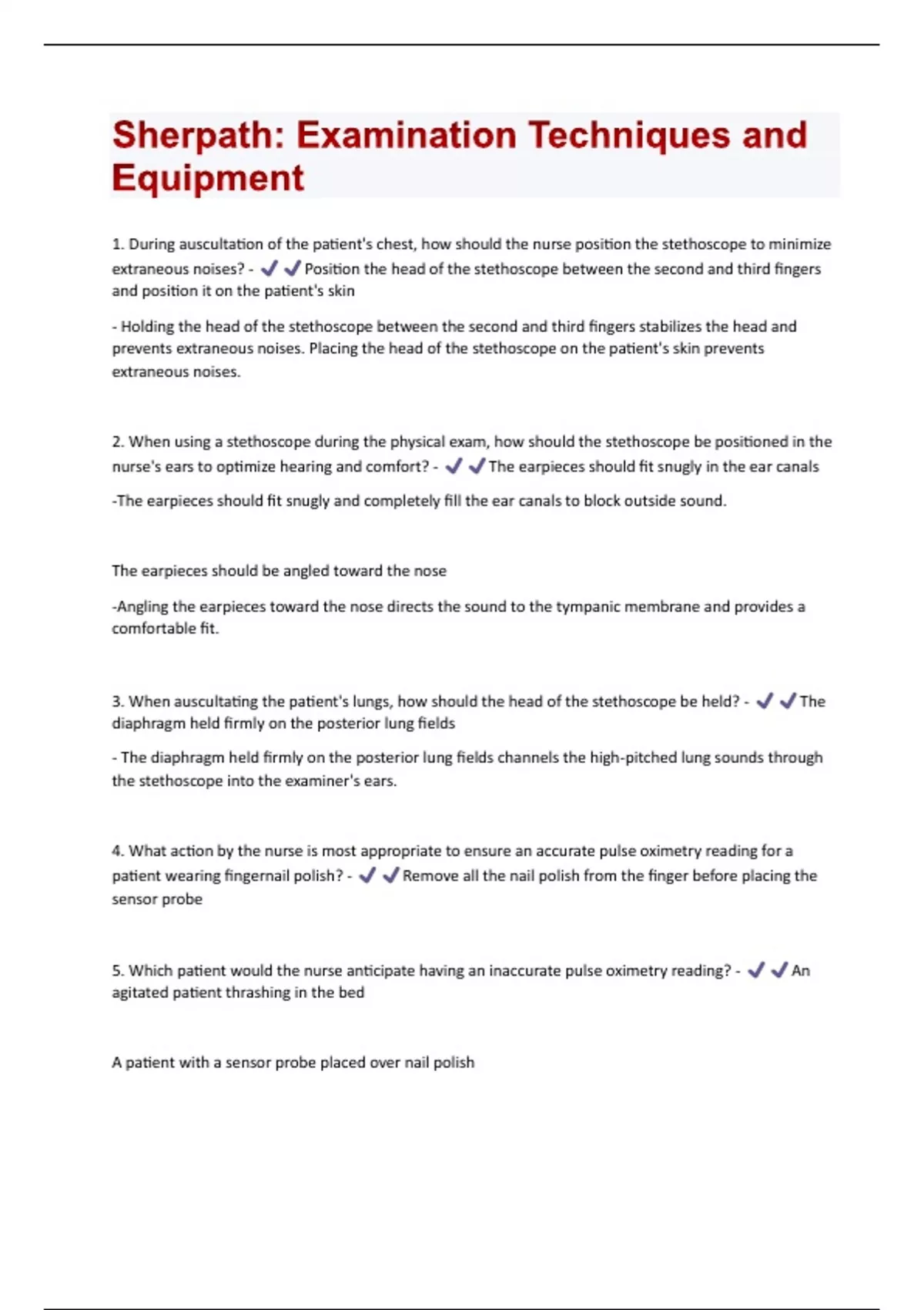 Sherpath: Examination Techniques and Equipment Questions And Answers With Latest Updates