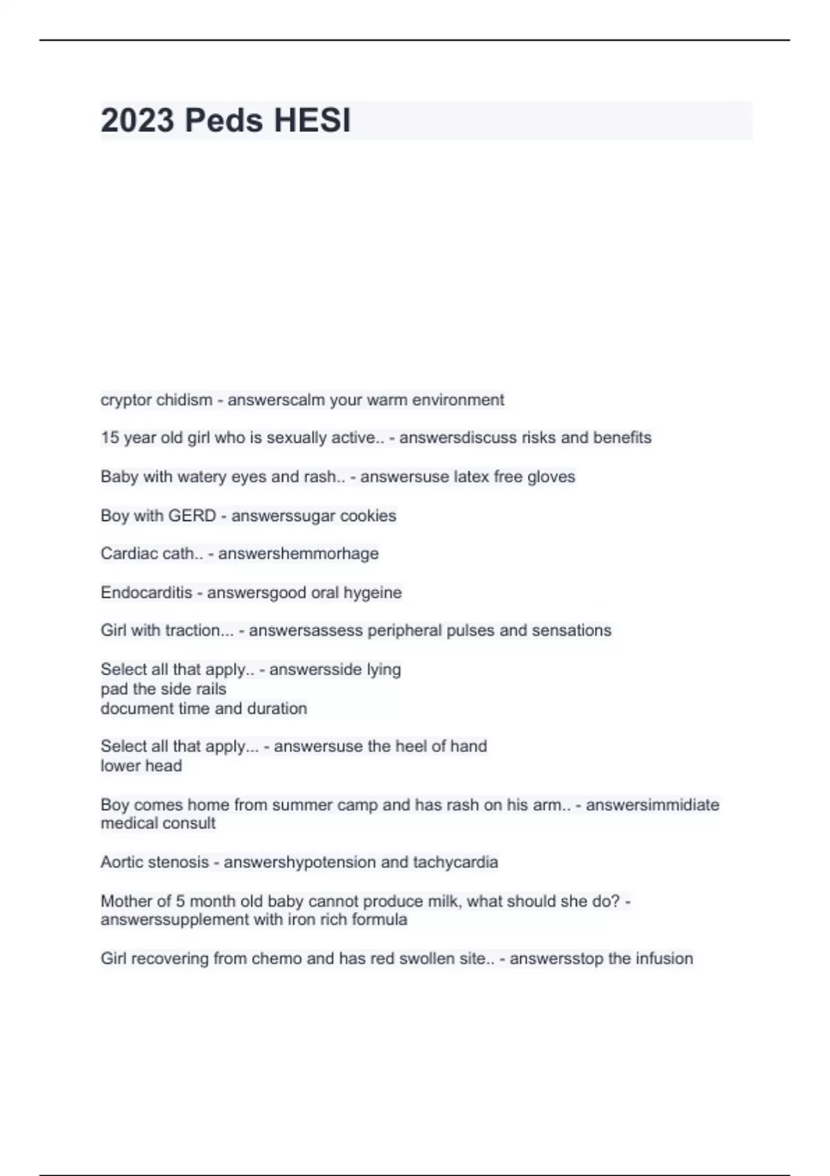 Exam of 4 pages for the course pediatric at pediatric (2023 Peds HESI Exam)