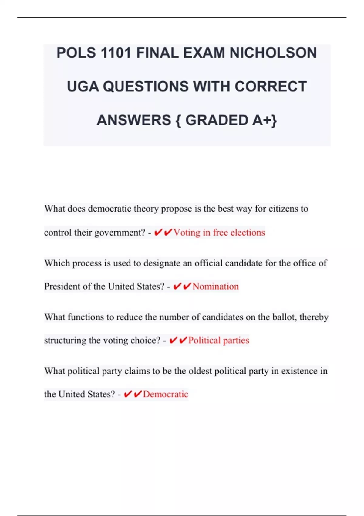 UGA QUESTIONS WITH CORRECT