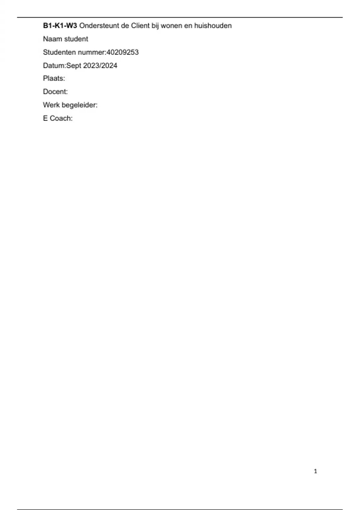 B1-K1-W3 Ondersteunt de Client bij wonen en huishouden
