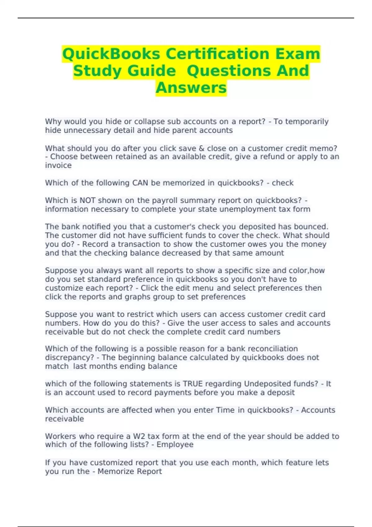 QuickBooks Certification Exam Study Guide Questions And Answers