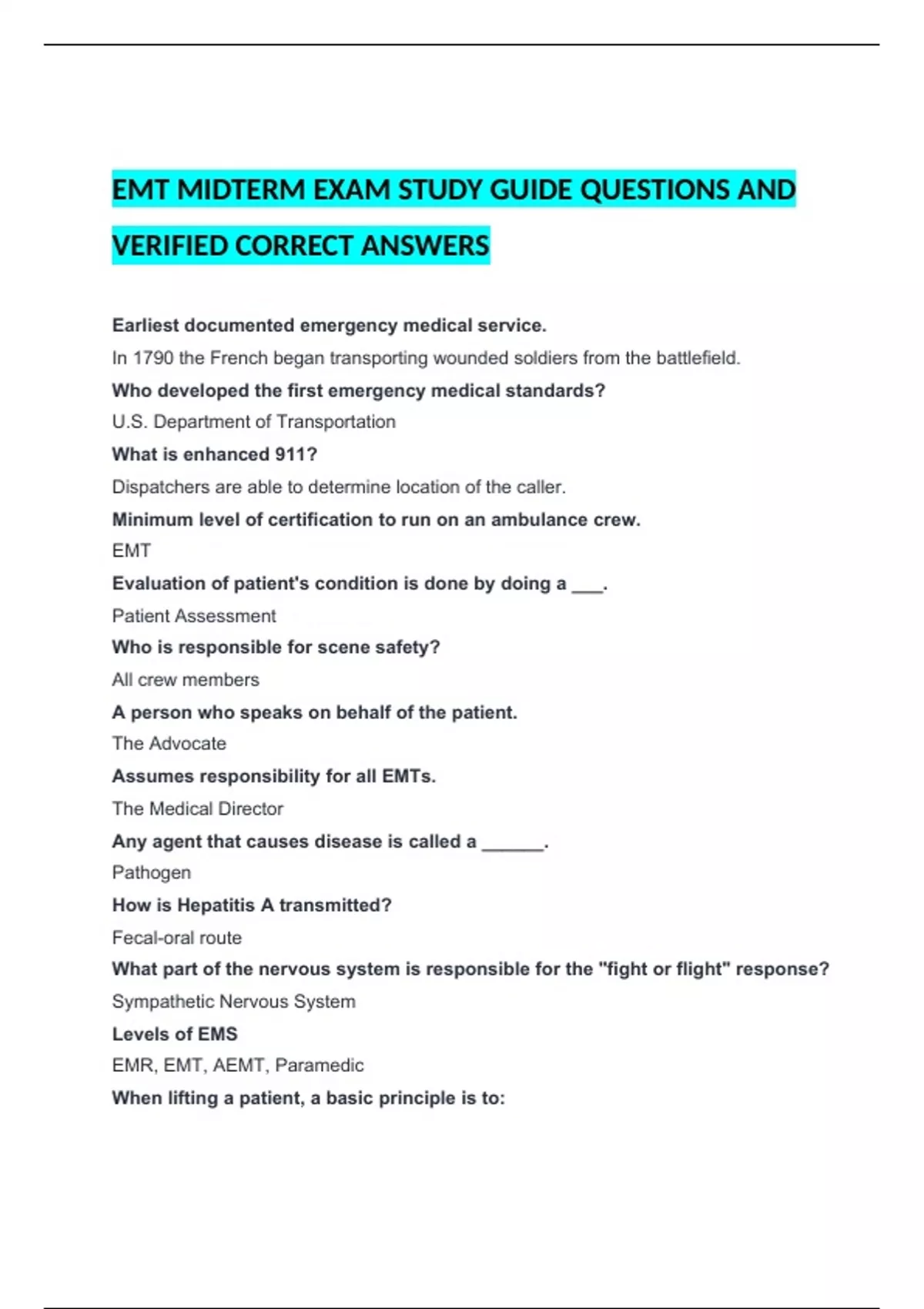 VERIFIED CORRECT ANSWERS