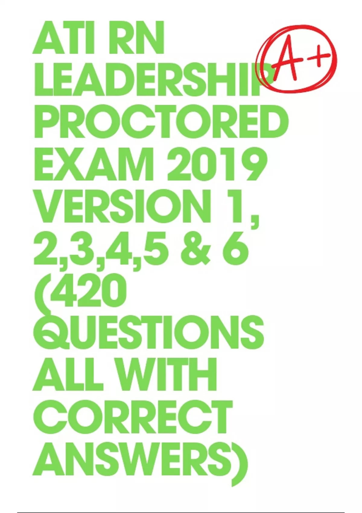 ATI RN LEADERSHIP PROCTORED EXAM 2019 VERSION 1, 2,3,4,5 & 6 (420 QUESTIONS ALL WITH CORRECT ANSWERS)