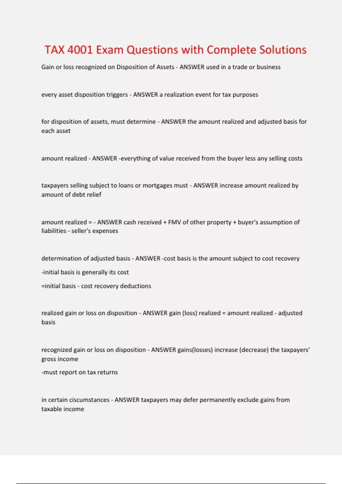 TAX 4001 Exam Questions with Complete Solutions