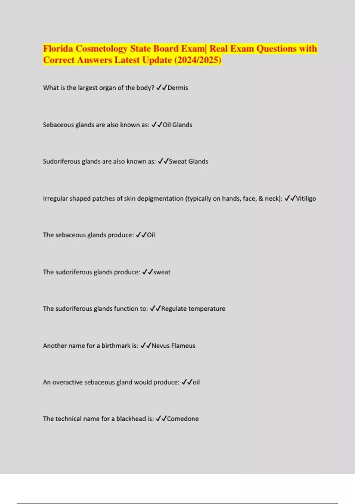 BUNDLE:: Cosmetology Exams Questions and Answers 2024/2025 Graded A+ | Full solution Pack