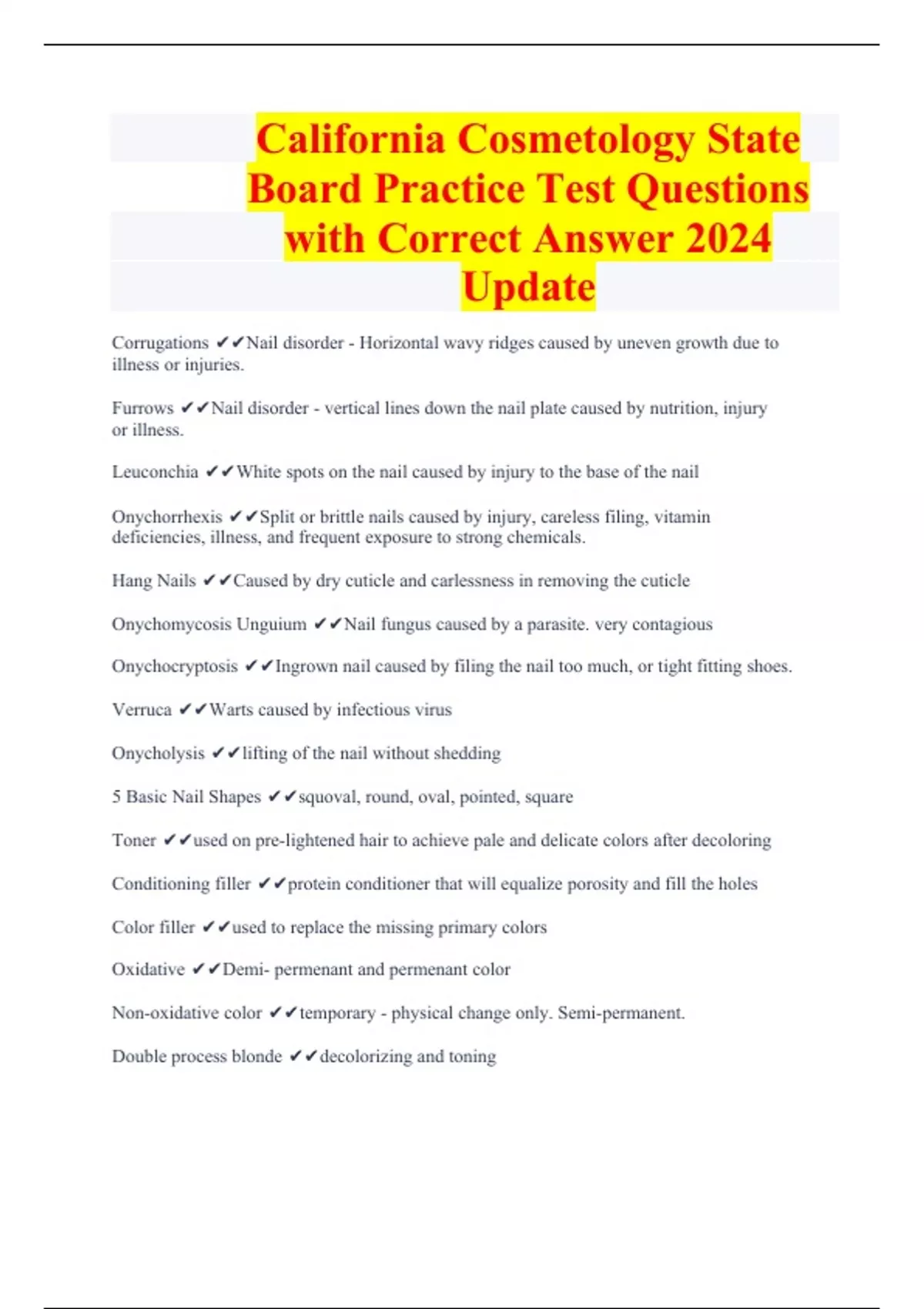 California Cosmetology State Board Practice Test Questions with Correct Answer 2024 Update