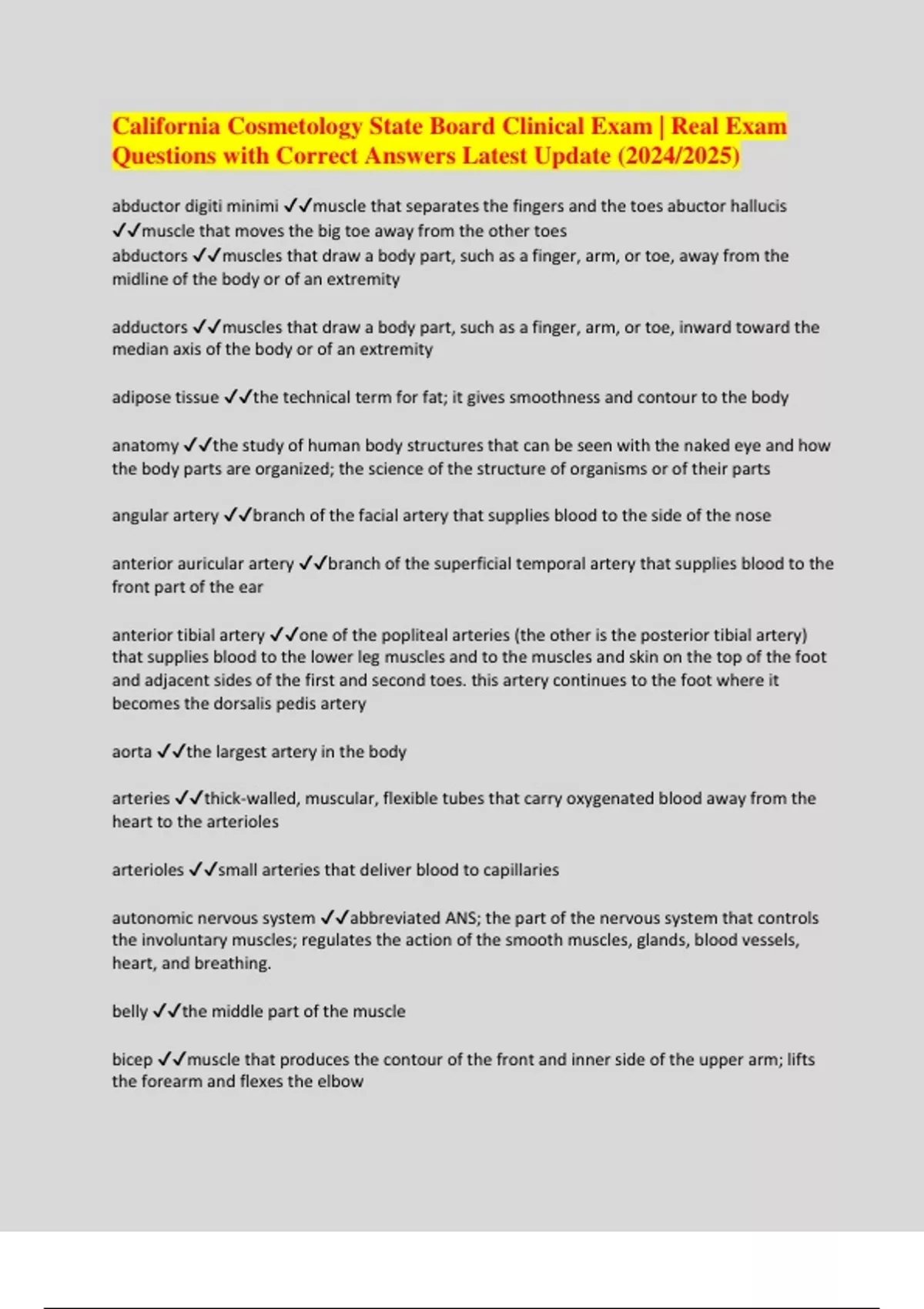 BUNDLE:: Cosmetology Exams Questions and Answers 2024/2025 Graded A+ | Full solution Pack