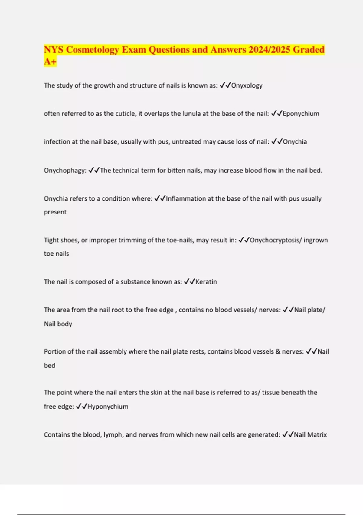 BUNDLE:: Cosmetology Exams Questions and Answers 2024/2025 Graded A+ | Full solution Pack