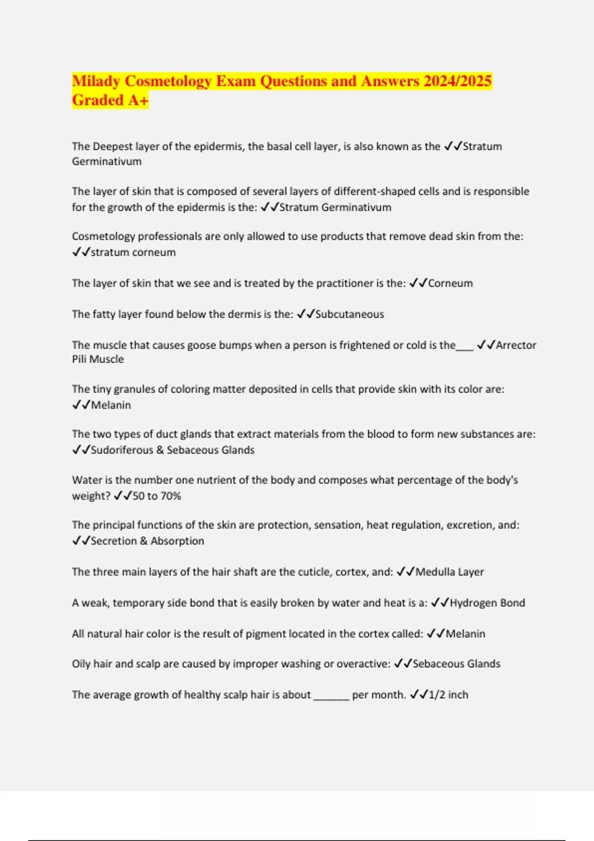 Milady Cosmetology Exam Questions and Answers 2024/2025 Graded A+