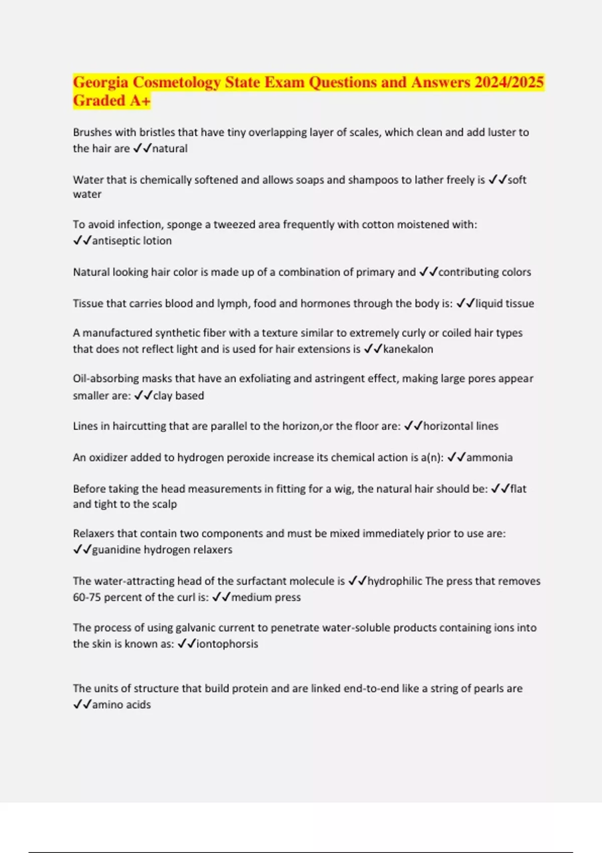 Georgia Cosmetology State Exam Questions and Answers 2024/2025 Graded A+
