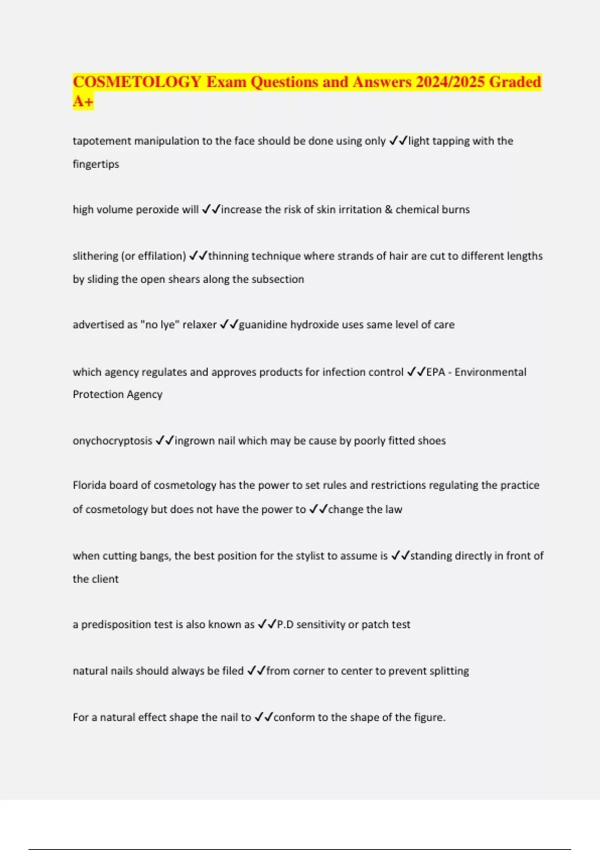 COSMETOLOGY Exam Questions and Answers 2024/2025 Graded A+