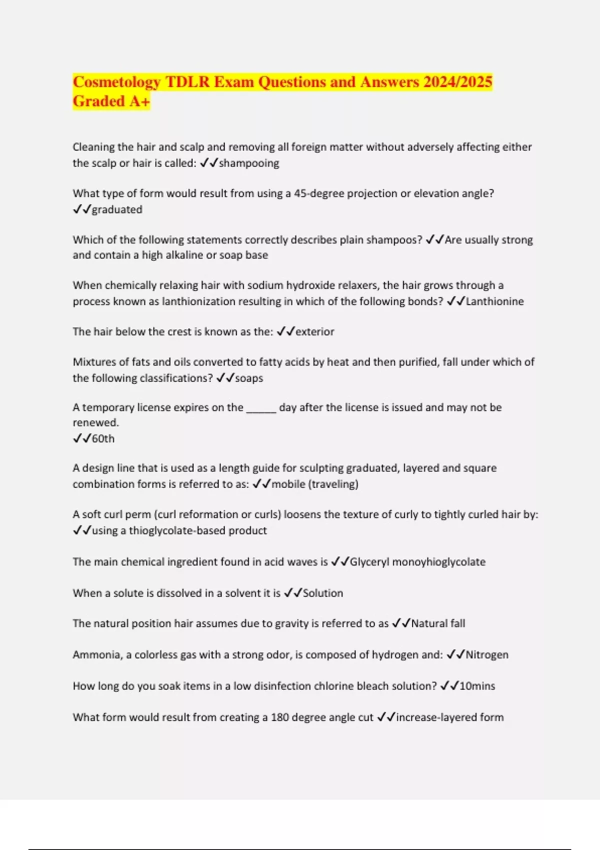 Cosmetology TDLR Exam Questions and Answers 2024/2025 Graded A+