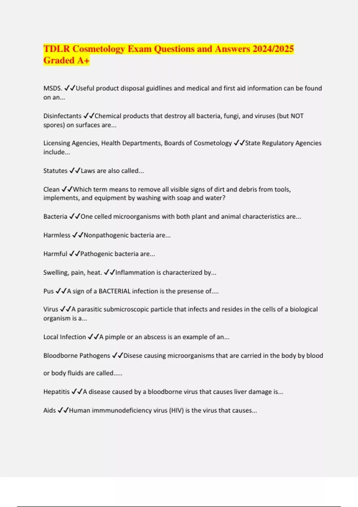 BUNDLE:: Cosmetology Exams Questions and Answers 2024/2025 Graded A+ | Full solution Pack
