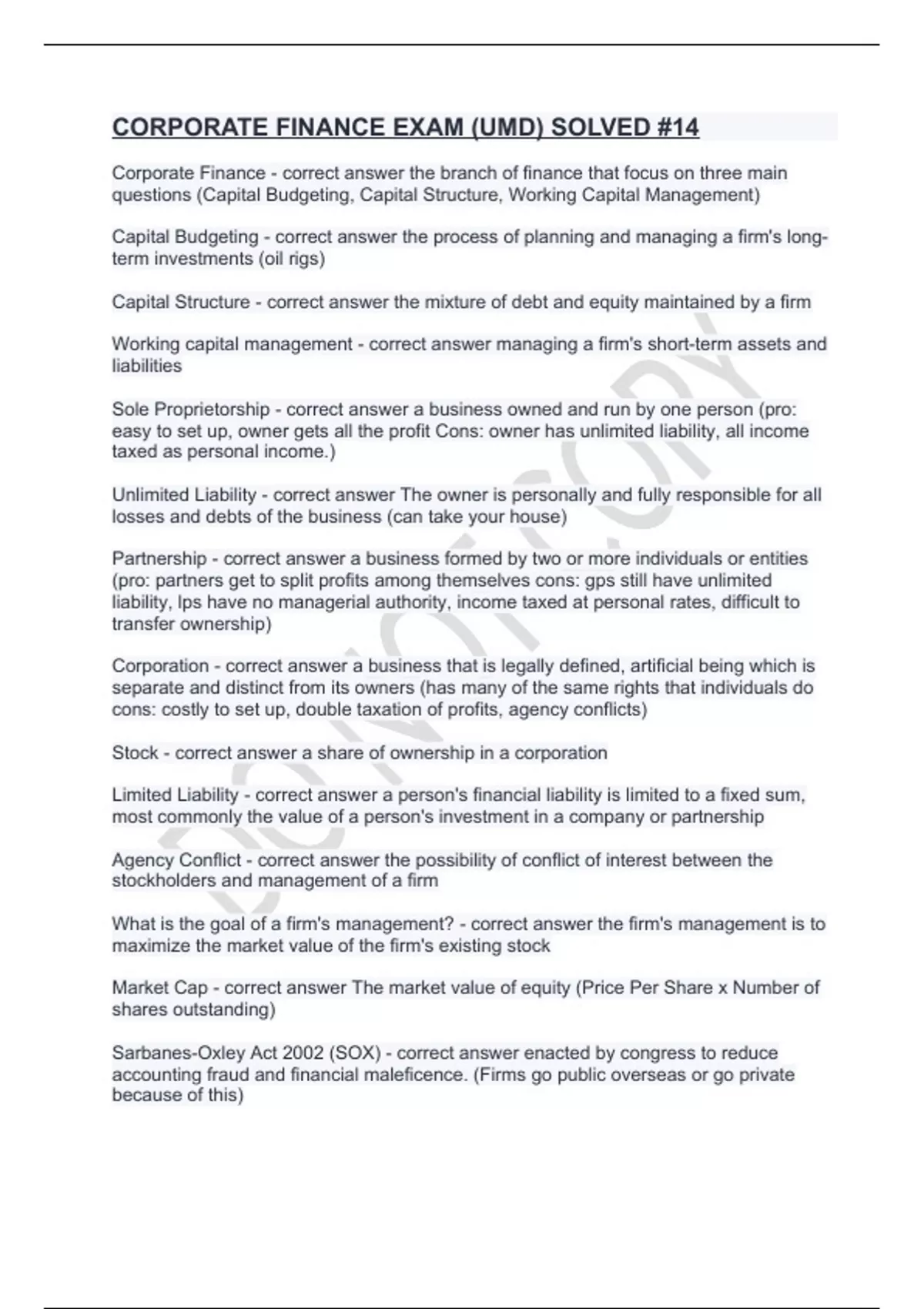 CORPORATE FINANCE EXAM (UMD) SOLVED #14