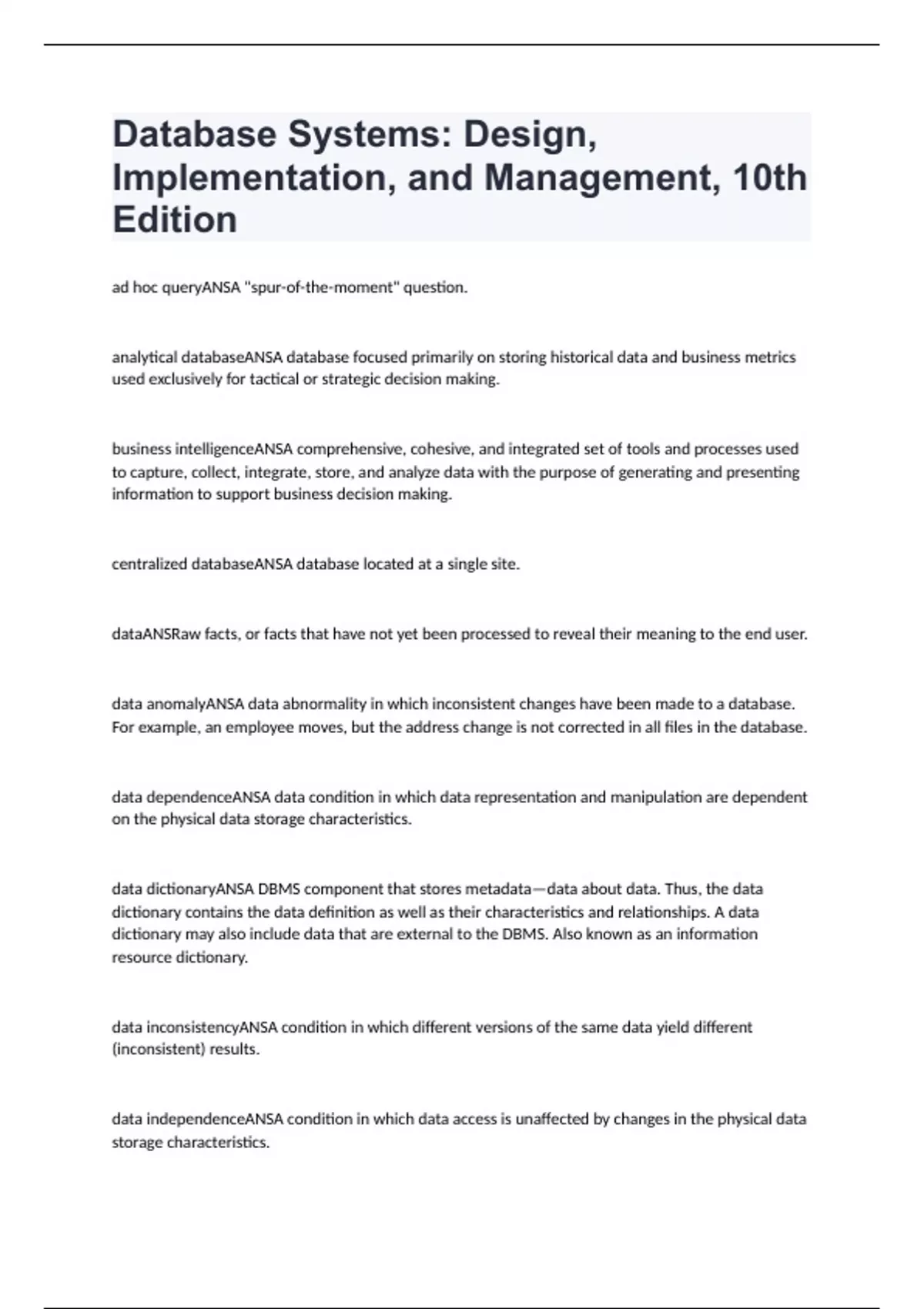 Database Systems: Design, Implementation, and Management, 10th Edition Exam Study Questions And Answers (GRADED A+)