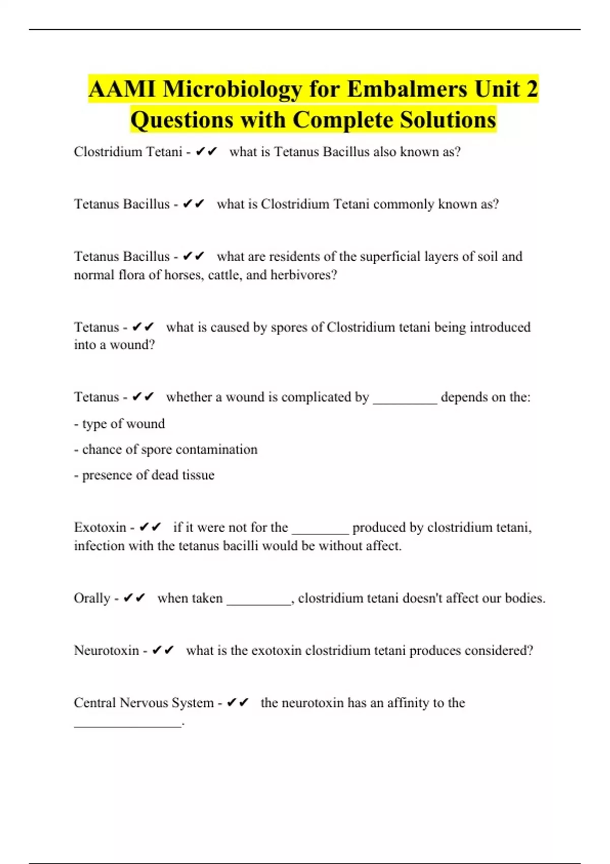 AAMI Microbiology for Embalmers Unit 2 Questions with Complete Solutions