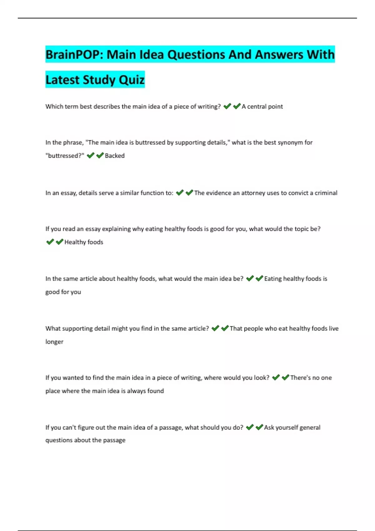 BrainPOP: Main Idea Questions And Answers With Latest Study Quiz