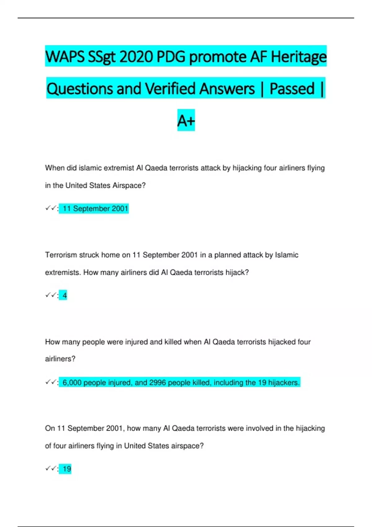 WAPS SSgt 2020 PDG promote AF Heritage Questions and Verified Answers | Passed | A+