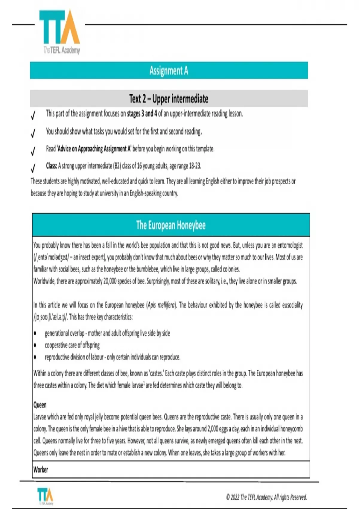 ✔ This part of the assignment focuses on stages 3 and 4 of an upper-intermediate reading lesson.
