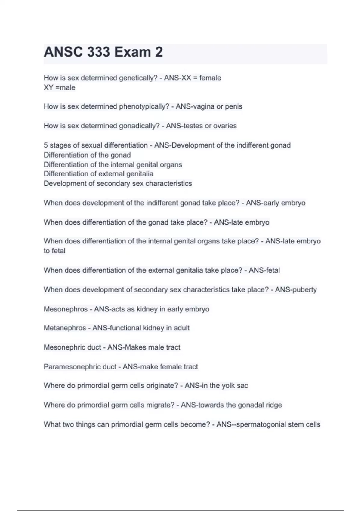 When does development of the indifferent gonad take place? - ANS-early embryo