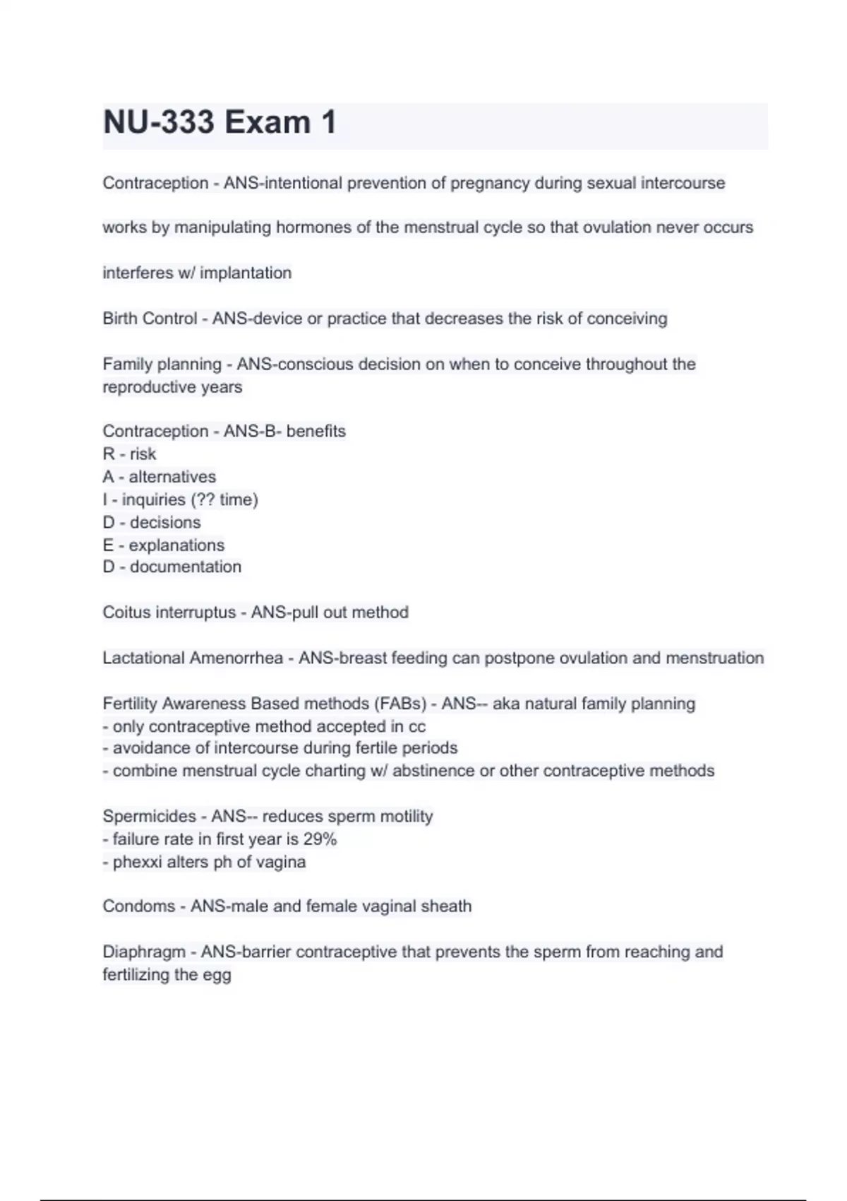 Contraception - ANS-intentional prevention of pregnancy during sexual intercourse
