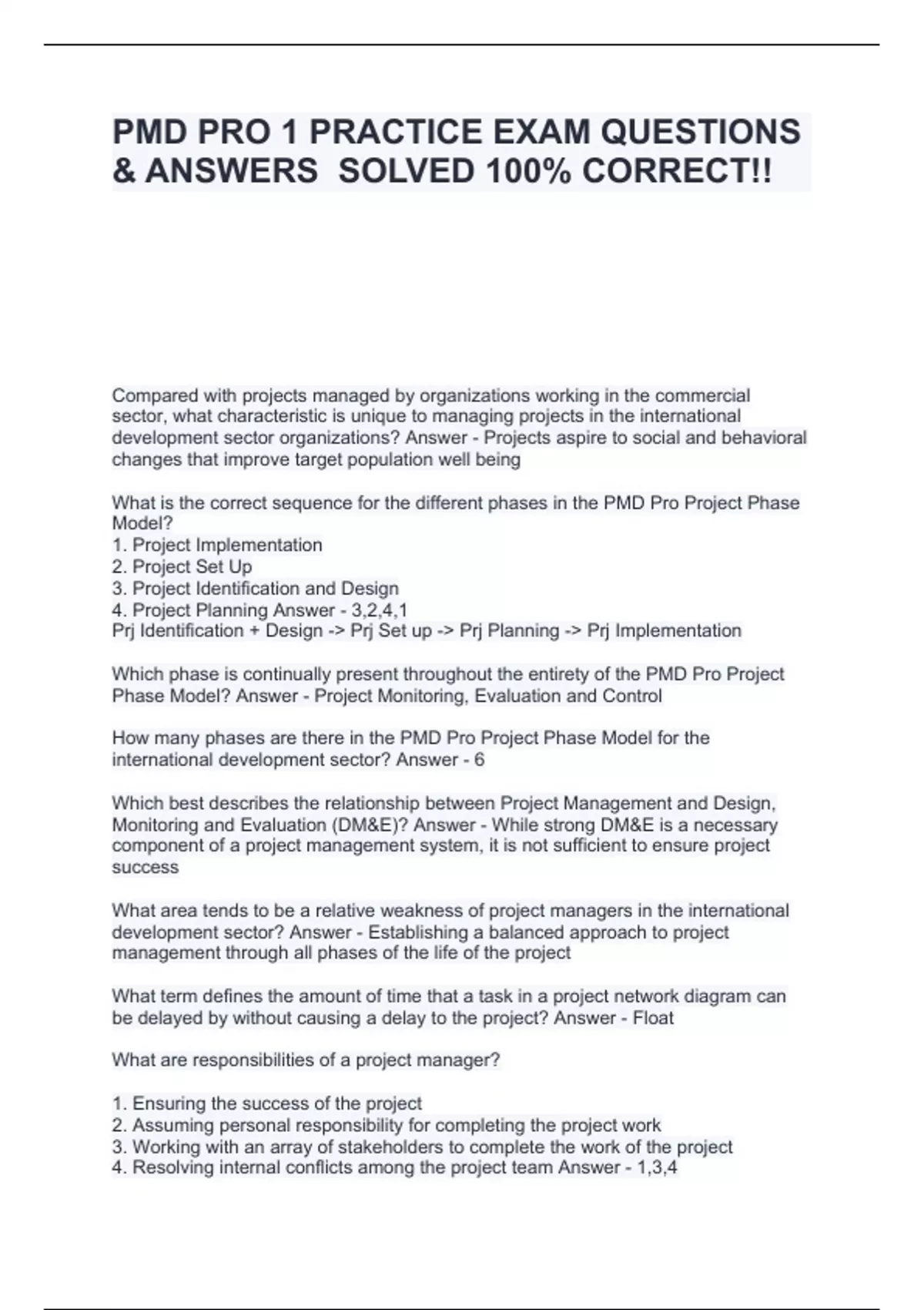 PMD PRO 1 PRACTICE EXAM QUESTIONS & ANSWERS SOLVED 100% CORRECT!!