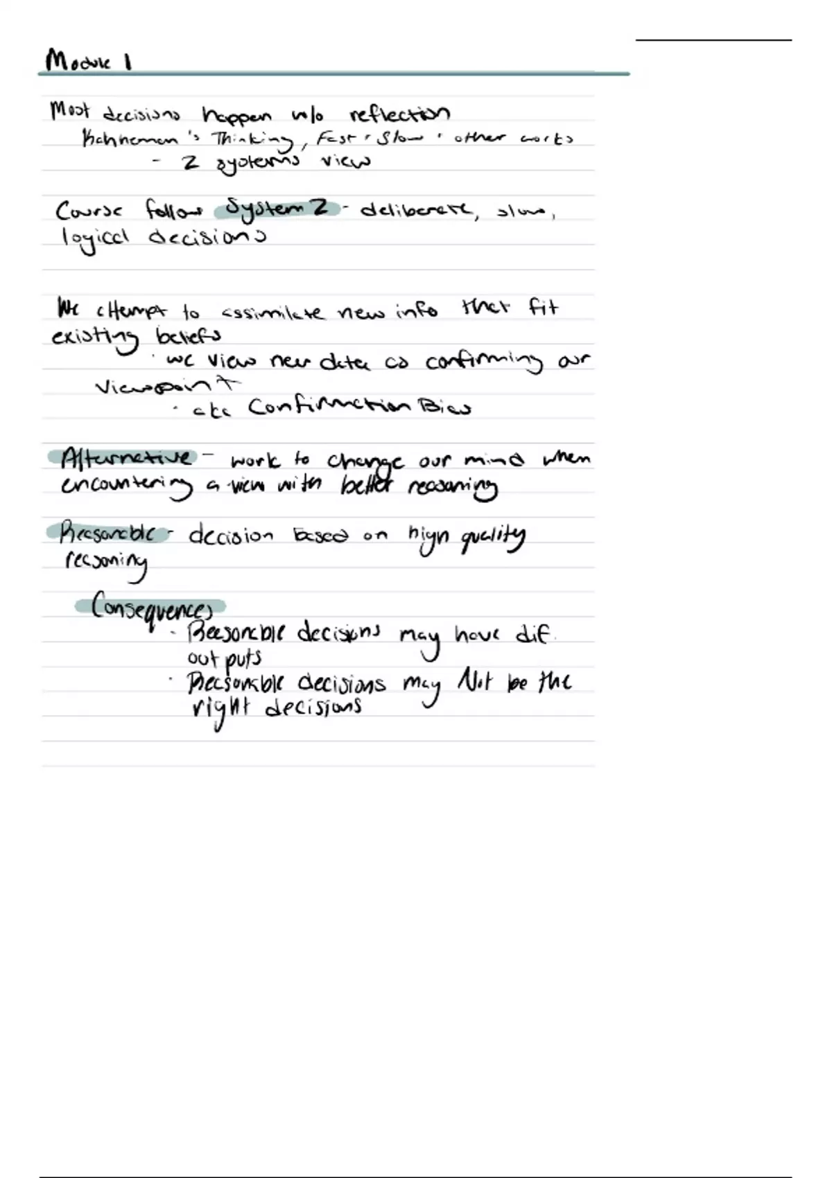 Handwritten notes from Marcus Adams' Critical Thinking (APHI112) class covering Module 1 of the course, taken in Fall 2023