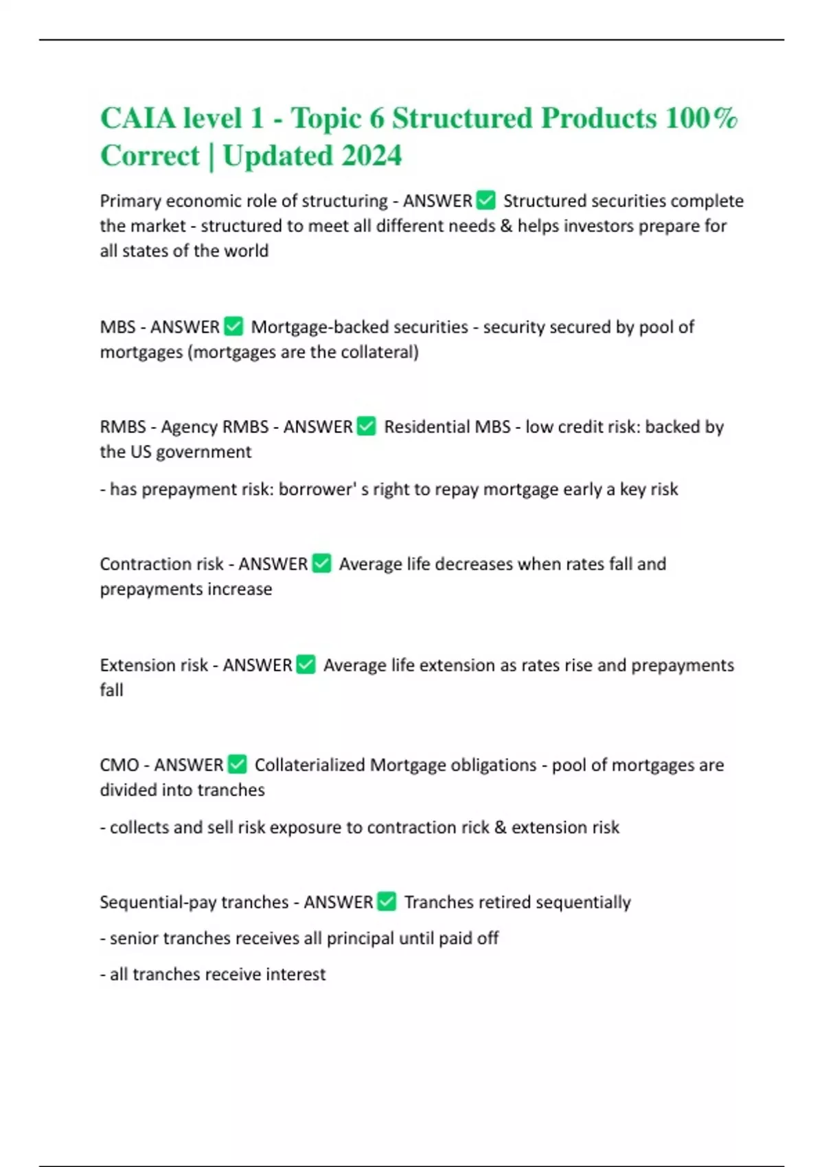 CAIA level 1 - Topic 6 Structured Products 100% Correct | Updated 2024