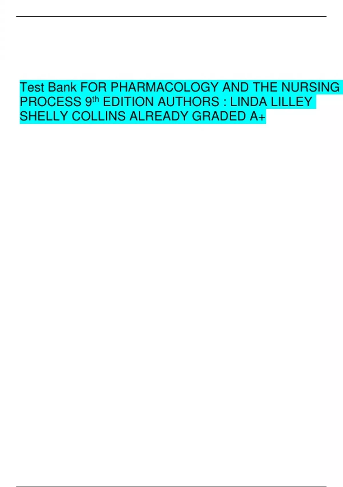 Test Bank FOR PHARMACOLOGY AND THE NURSING PROCESS 9th EDITION AUTHORS : LINDA LILLEY SHELLY COLLINS ALREADY GRADED A+