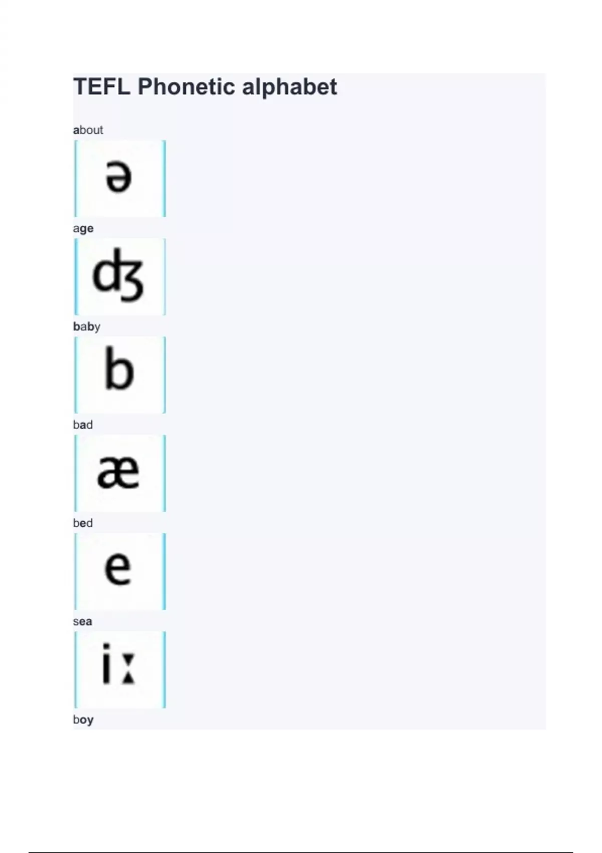 TEFL Phonetic alphabet