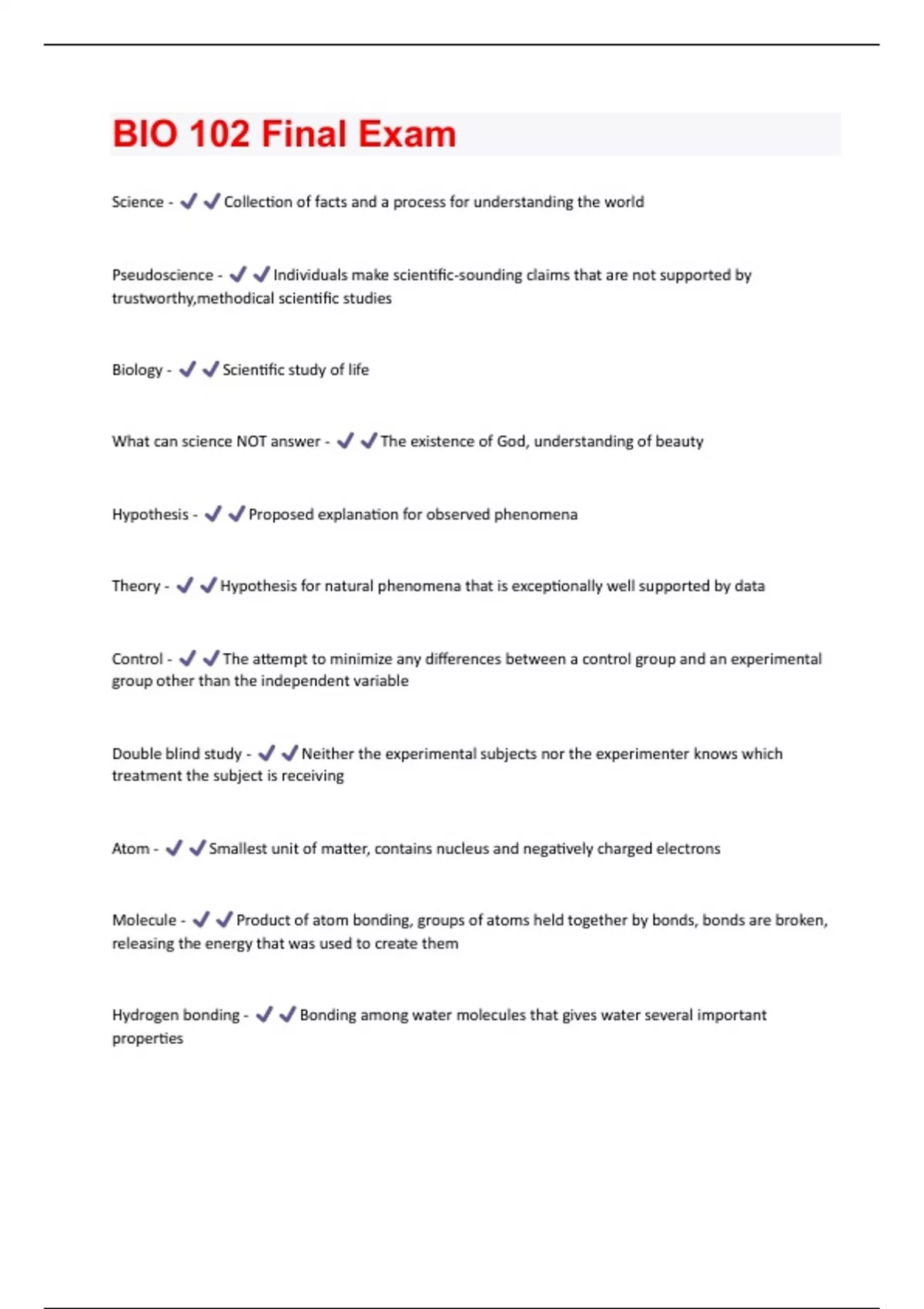BIO 102 Final Exam Latest Questions With Passed Solutions!!