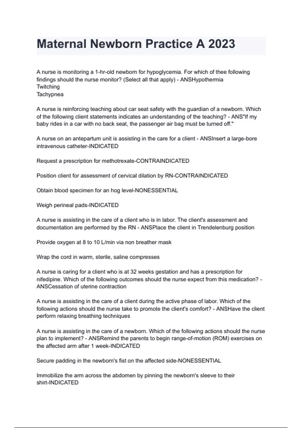Maternal Newborn Practice A 2024 questions and answers rated A+ by experts