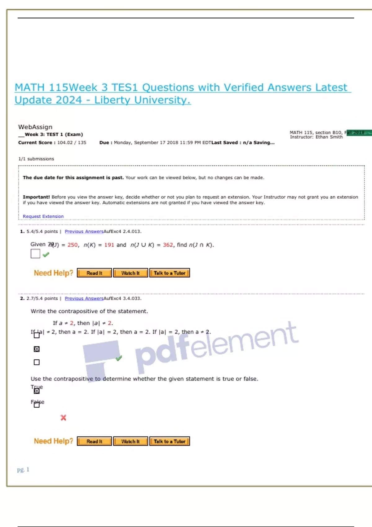 MATH 115Week 3 TES1 Questions with Verified Answers- Liberty University.