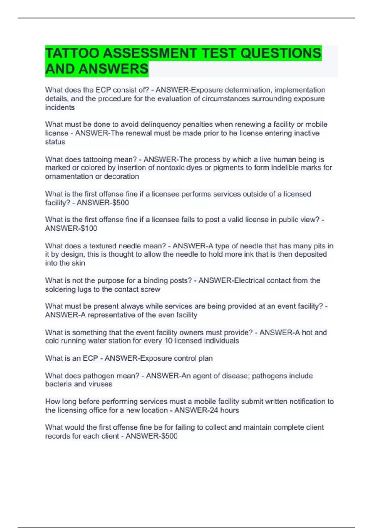 TATTOO & BODY PIERCING EXAM BUNDLE (GRADED A+)