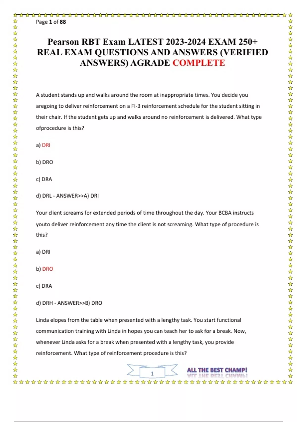 Pearson RBT Exam LATEST EXAM 250+ REAL EXAM QUESTIONS AND ANSWERS (VERIFIED ANSWERS) AGRADE COMPLETE