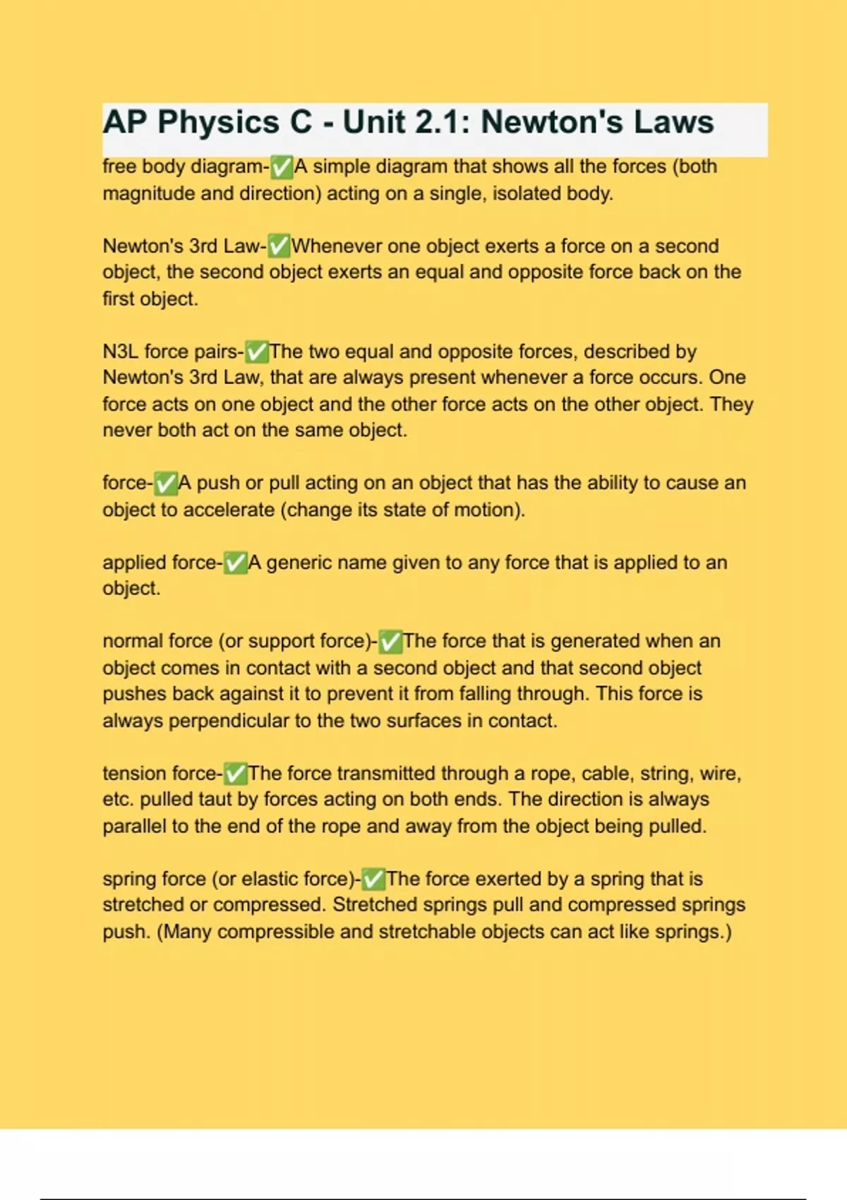 AP Physics C - Unit 2.1_ Newton's Laws. with 100% Correct Answers
