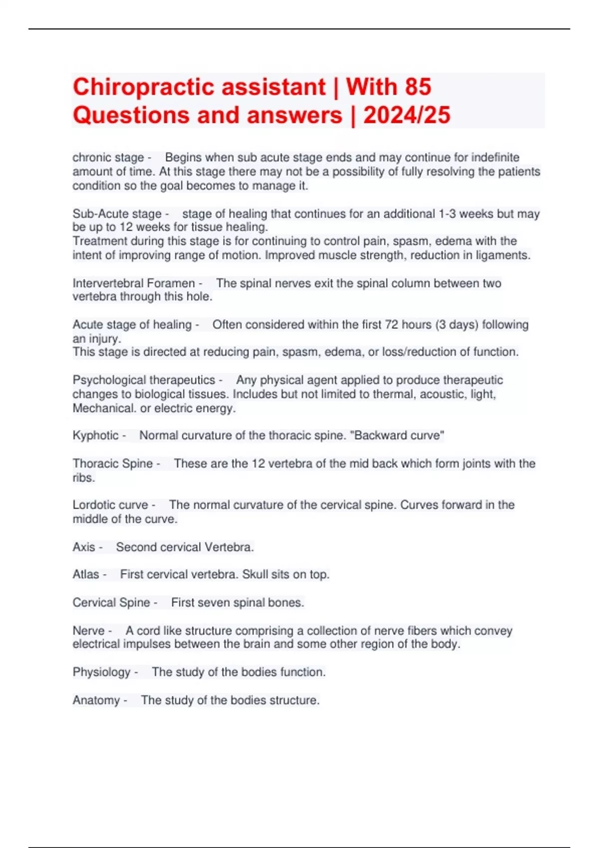 Chiropractic assistant | With 85 Questions and answers | 2024/25